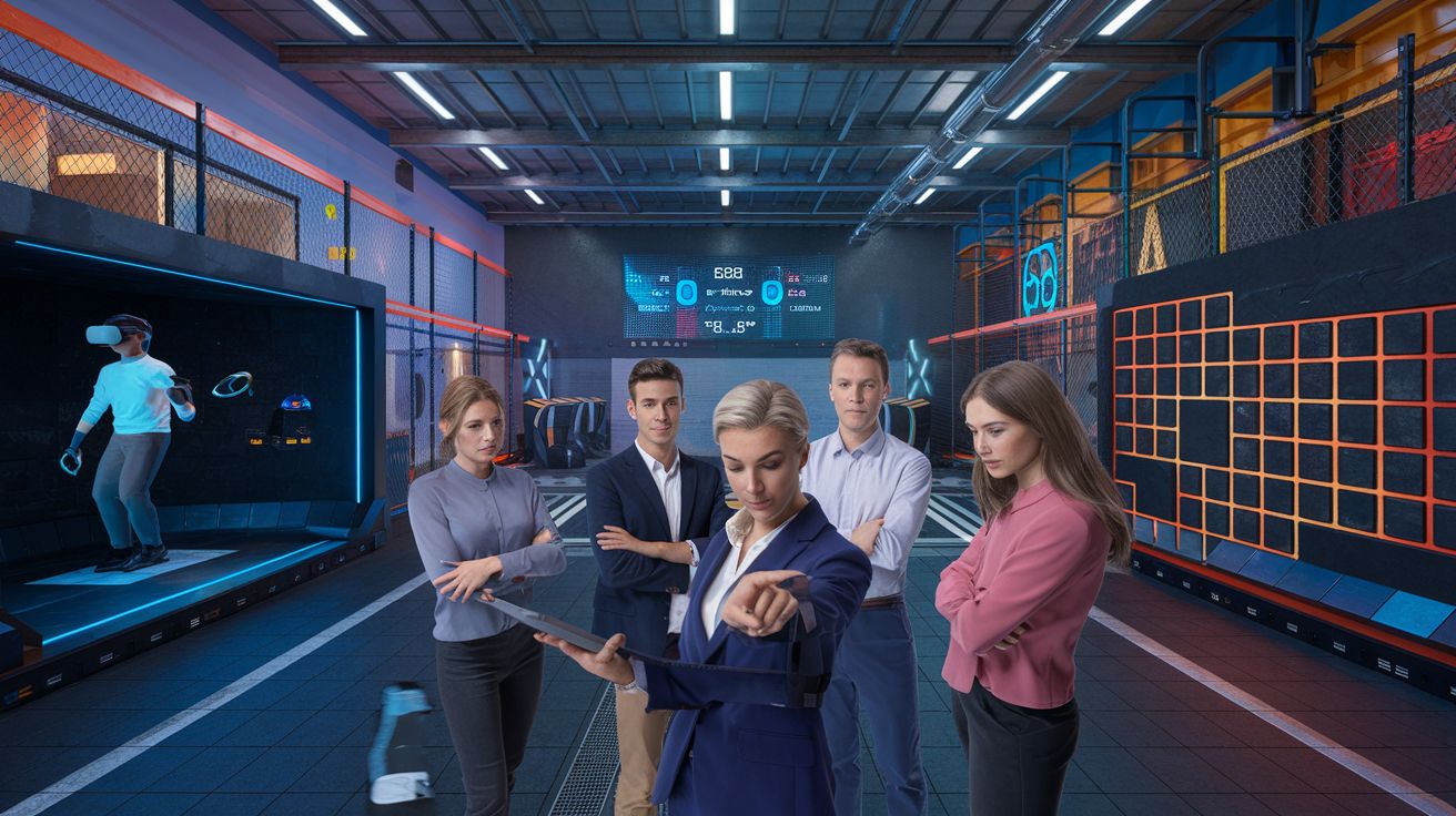 Het licht in de hal kaatst op een reeks strak opgebouwde zones: hier een rij deuren die naar mysterieuze kamers leiden, daar een open arena waar je straks in een andere wereld rondloopt met een VR-headset. Je hoort gelach, korte instructies, het tikken van schoenen op beton. In de verte wordt een scorebord gereset. Dit is het soort plek waar enthousiasme vanzelf ontstaat, maar waar je ook meteen ziet wie er al een plan heeft en wie “we zien wel” als strategie gebruikt.