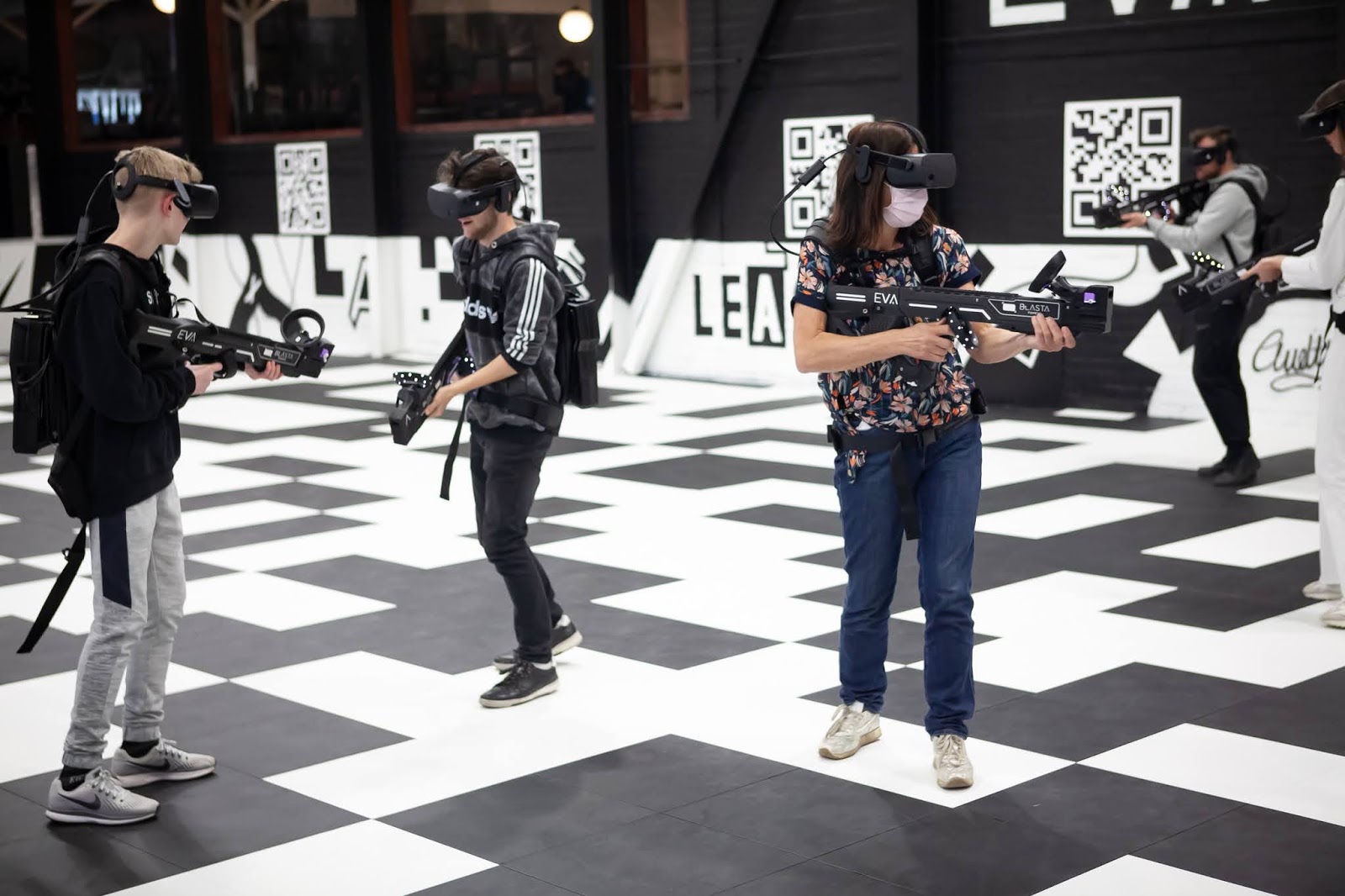 Onze EVA VR-game kan je vergelijken met paintball maar dan in een mysterieuze virtuele wereld. Hier nemen twee teams het tegen elkaar! Je speelt verschillende soorten spelletjes zoals Domination, Team Death Match en een spannende verrassing! Wacht dus niet langer en kom ze snel bij ons ontdekken!